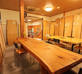 営業 / 平日・土曜日 10:00~18:00 定休日 日祝祭日(お盆、年末年始、GW)様々な樹種の無垢の展示販売を行っており、ショールームに入ると森に来ているかのような木の香りに包まれます。