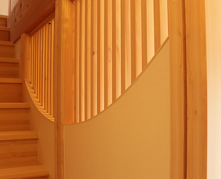 自然素材の住まいづくり。家の中に風の通り道をつくり、太陽の恵みを取り入れることで呼吸・調湿する「呼吸する家」。自然素材の家には防音・吸音効果もあります。